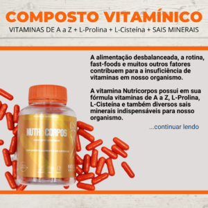 A vitamina Nutricorpos possuem vitaminas de A a Z, L-Prolina, L-Cisteína e também diversos sais minerais indispensáveis para nosso organismo.